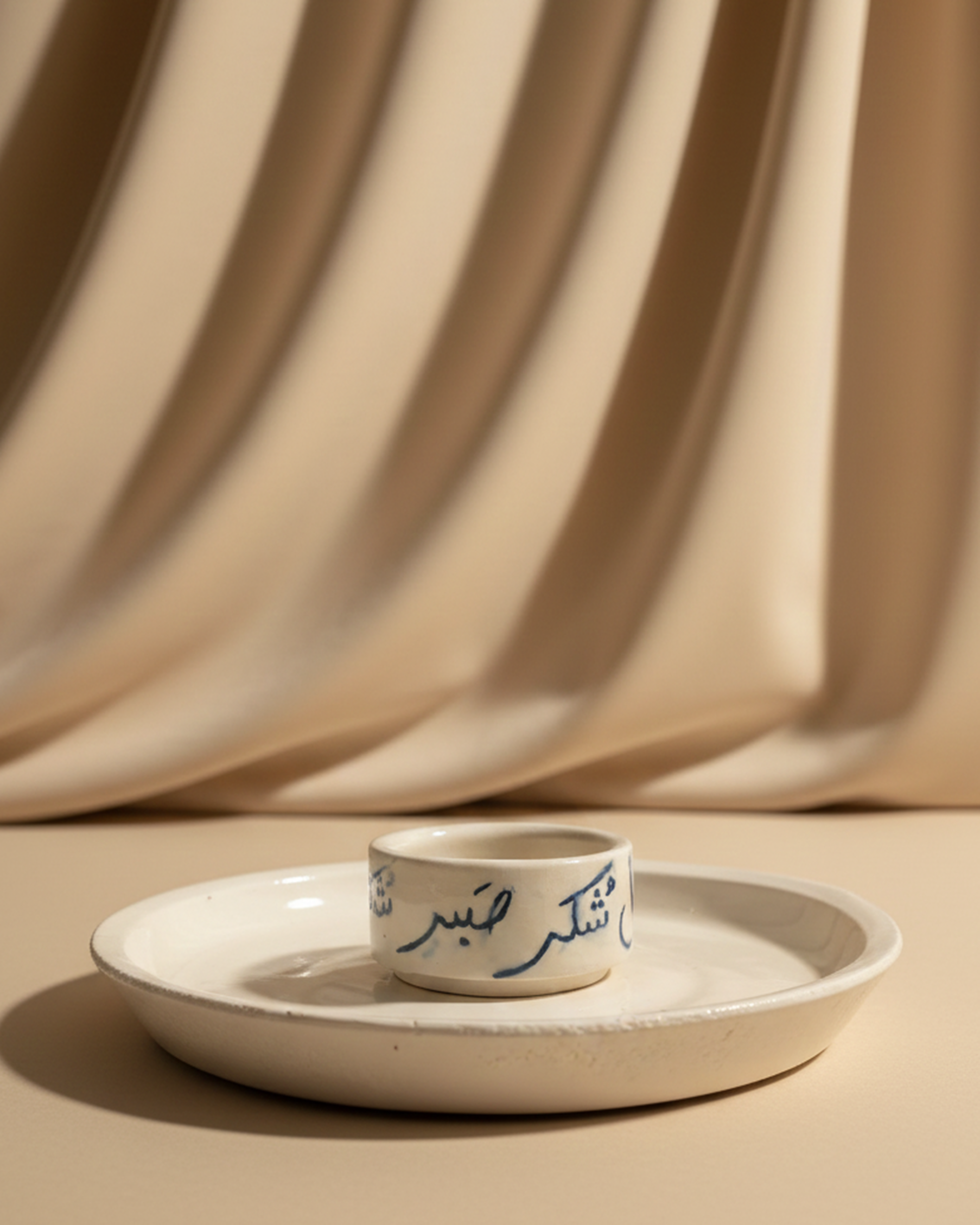 This handcrafted ceramic bowl features elegant, hand-painted blue calligraphy that brings a sense of mindfulness to your table.